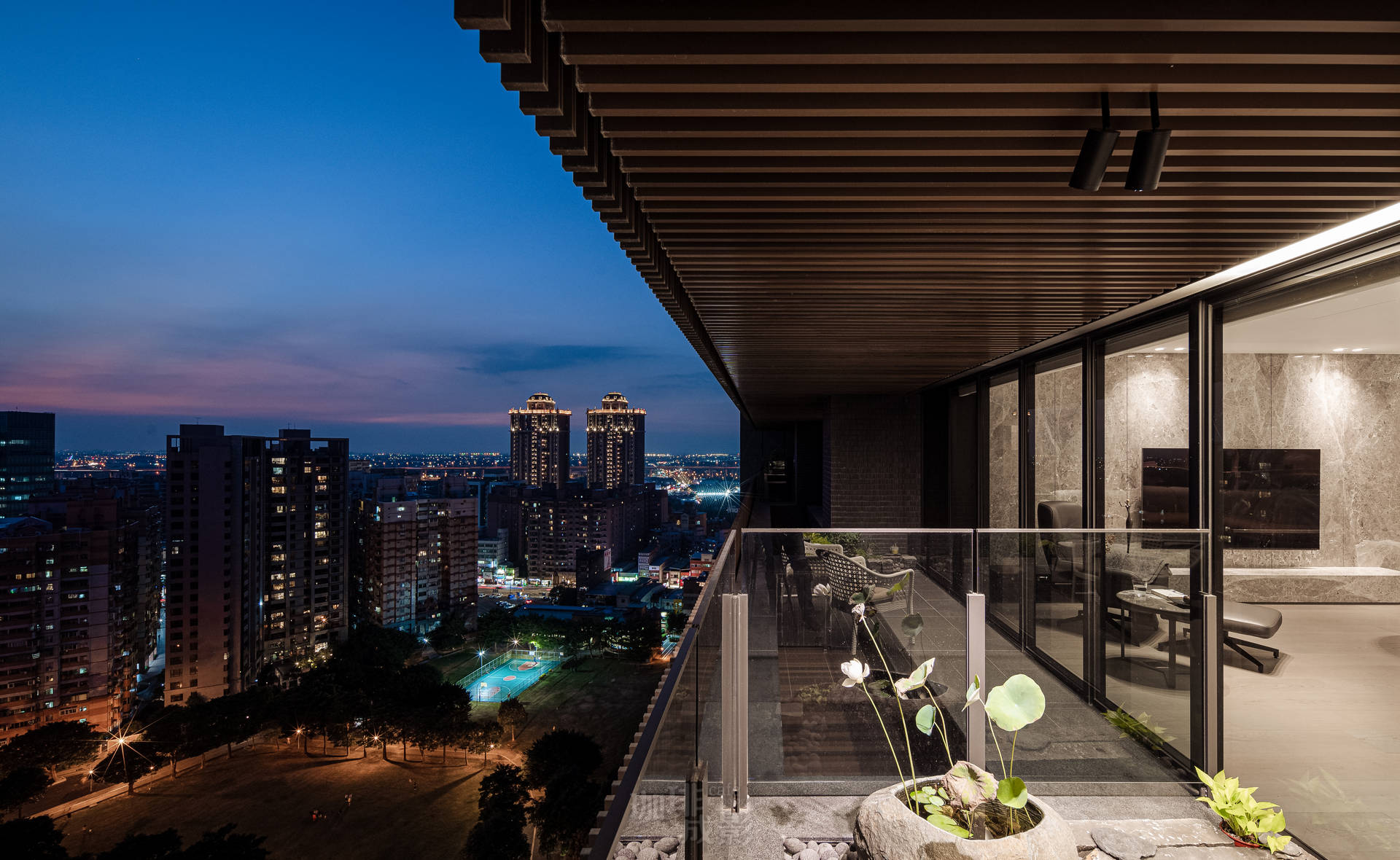 當最後一抹夕陽掠過電視主牆的溝縫,整面石頭突然活了過來,那些金色紋路像岩漿般在深色基底上流動,瞬間明白何謂「家的氣度」。