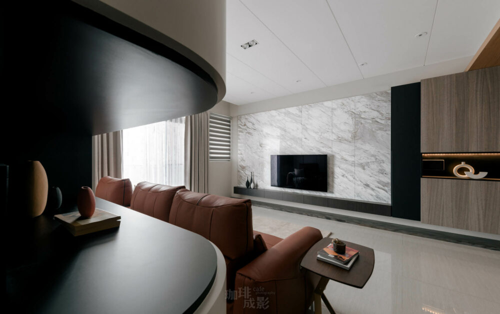 在桃園的繁華都市中,本案以其沉穩內斂的設計語彙,詮釋現代居住空間的極致美學。步入其中,映入眼簾的是大量精選石材鋪陳的地面與牆面,紋理細膩,色澤深邃,散發著低調奢華的質感。