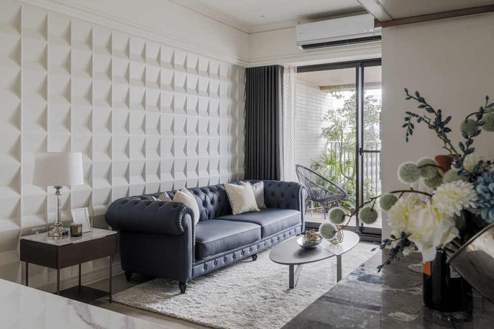 這場實品屋的施工細節很棒,所以拍照時自然需要格外帶到一些特寫角度。可惜的是,客廳並沒有安裝電視機,所以感覺起來有點空虛。一般這種情況,通常會擺一張掛畫在電視機的位置。但是設計師特別要求,希望照片中能夠有呈現電視機,讓整個空間比例感覺更平衡。